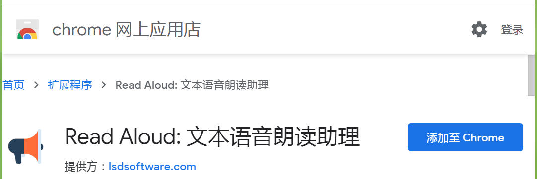 娑婆世界的众生,耳根最利。边听边看往往比单纯地阅读,更容易理解和记忆。因此,可以用电脑来朗读教材,边听边看。而且,还可以通过反复聆听来熏修。 用电脑来朗读教材有两条途径:使用浏览器的扩展程序或者使用语音软件。 壹、使用扩展程序你可以在浏览器上安装免费的扩展程序“Read Aloud”来朗读所选文本,这是非常方便的。其方法是: 一、安装“Read Aloud”点击以下网址,进入“Chrome 网上应用店- 扩展程序”网页,然后点击“添加至Chrome”即可(如下图所示)。 注:如果你使用的是360浏览器,上述步骤同样有效。