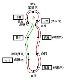 王自强先生的《夹脊关揭密》一文,文中以自身练功体验,对夹脊关的治病养生奇效作了初步提示。读后深为王先生这种勇于实践、敢于探索的精神所感动。但由于该文毕竟是因“一次巧遇”而引发的探索性文章,故而对于夹脊关在修炼中的具体作用和正确的修习方法还未阐述详尽。今据师传及丹道典籍,将夹脊之密和盘托出,以飨读者。 夹脊关,又称辘轳关,位于脊柱二十四节正中,与中医针灸之“中脘穴”前后对应。它上通百会,下彻尾闾,中透心骨,外可拈摄天地灵阳之气,内能救护一身立命之宝。 〔背后三关〕脑后曰玉枕关,夹脊曰辘轳关,水火之际曰尾闾关。〔辘轳(lù lu)〕安在井上绞起水桶的器具。